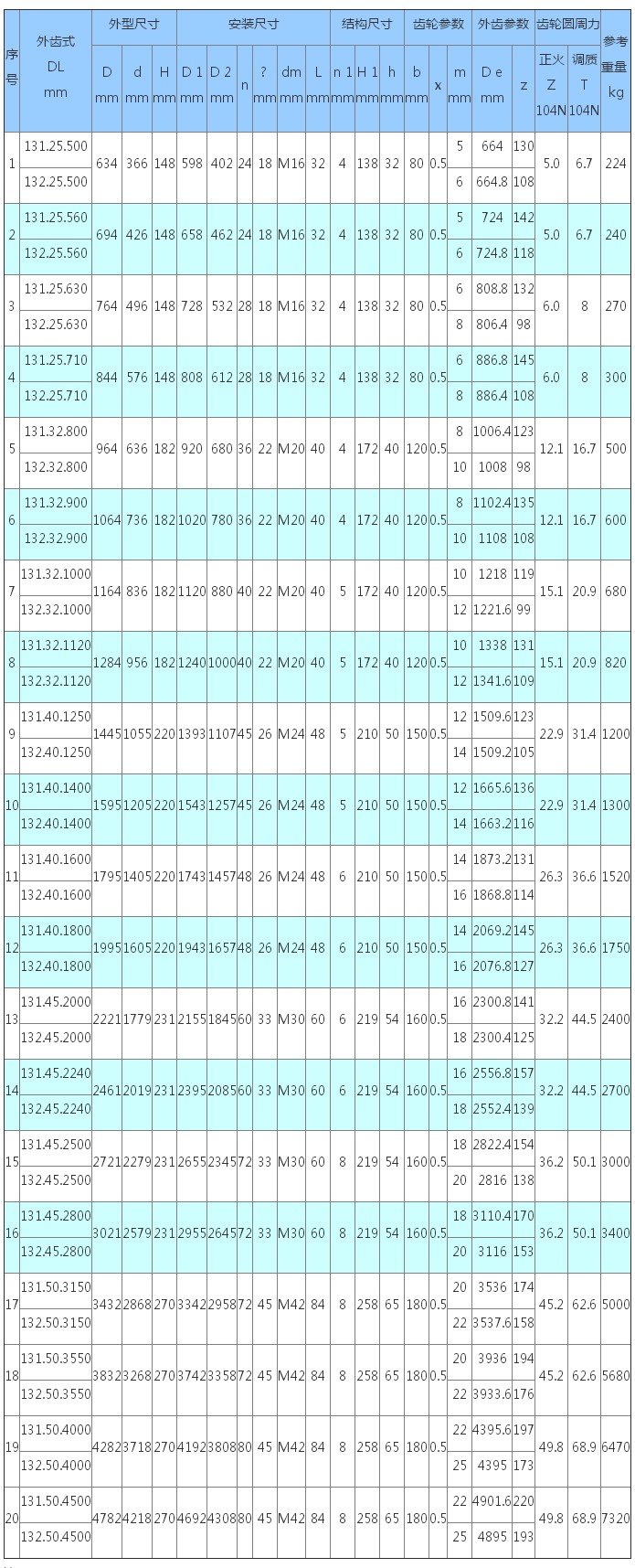 3、表內齒輪圓周力為最大圓周力,額定圓周力取其1/2。